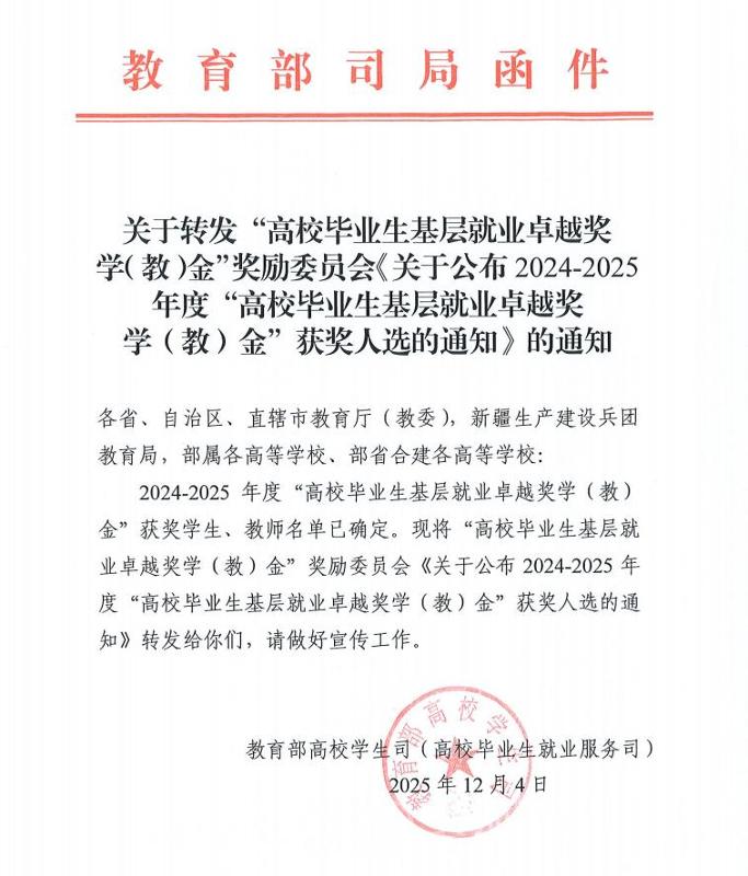 希望杜焱焮同学珍惜荣誉、再接再厉,坚守育人初心,在乡村教育一线继续深耕,再创佳绩。全校师生要以杜焱焮同学为榜样,学习她扎根乡土、潜心育人的奉献精神,勇担立德树人使命,在各自的岗位上奋发有为,将青春热血融入时代发展与教育事业,为培养时代新人、助力乡村教育振兴贡献智慧与力量!